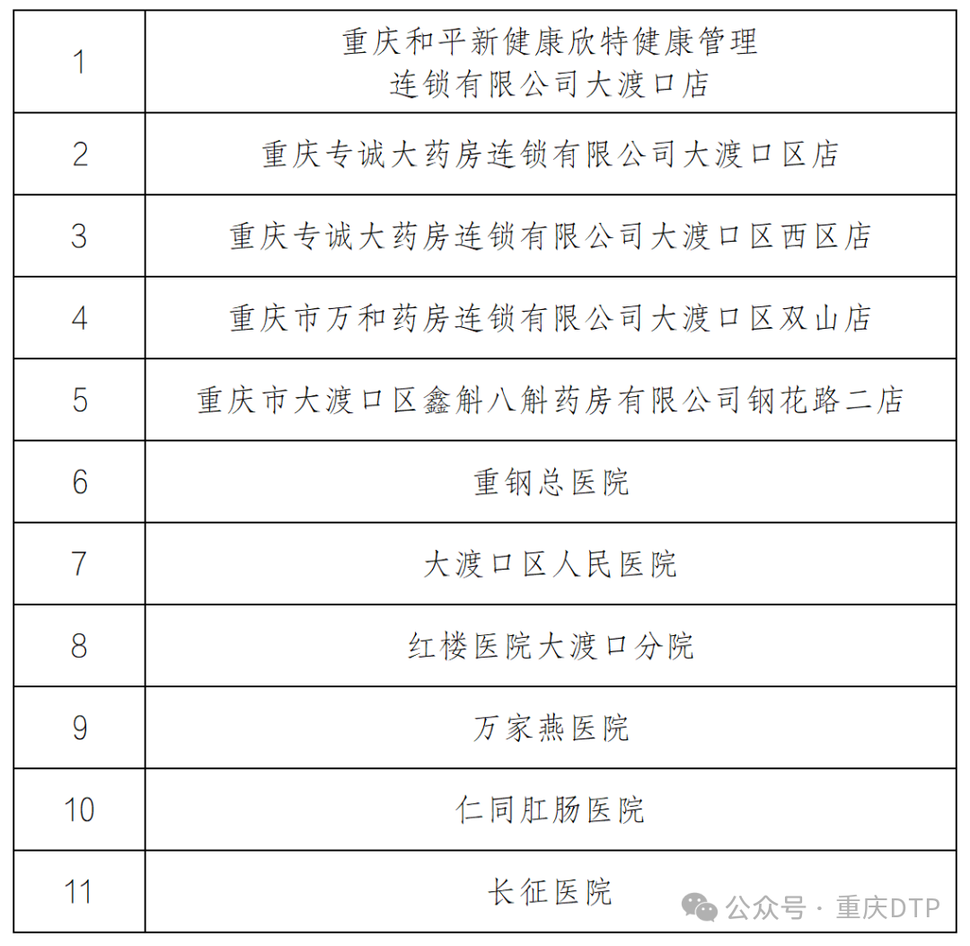 1、重庆专诚大药房连锁有限公司大渡口区店(大渡口区人民医院店)